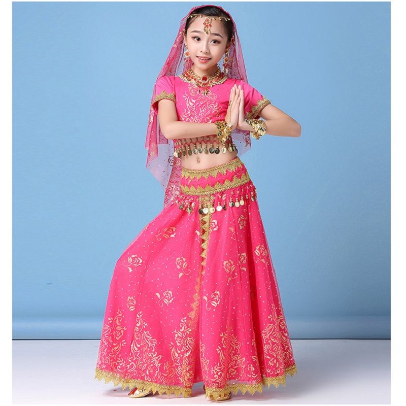 Children Belly Dancing Costume Kids Indian Dance Dress 5 Pcs Bollywood Dance Costumes For Girls Performance Dancing Sets