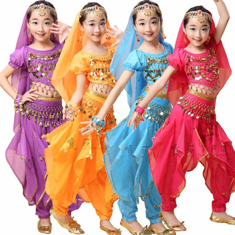 Us 19 53 15 Off 4 Pieces Girls Kids Belly Dance Costume Bollywood Indian Dancing Dress Dancing Clothing Stafge Wear Ballroom Performance Dress In