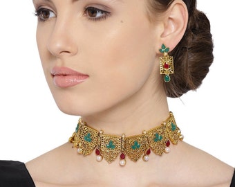 Indian Choker Necklace Indian Jewelry Traditional Jewelry Bollywood Jewelry Indian Choker Set Bridal Jewelry Bollywood Choker Necklace