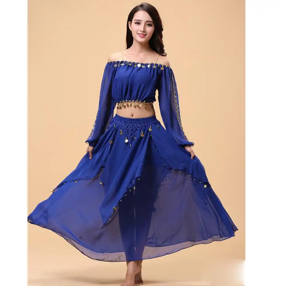 Girls Ballroom Bollywood Dancing Dress Indian Belly Dance Wear Costumes Set For Women Chiffon Belly Outfits Top And Skirt Suits